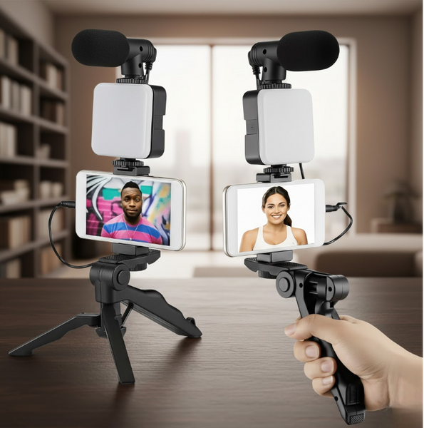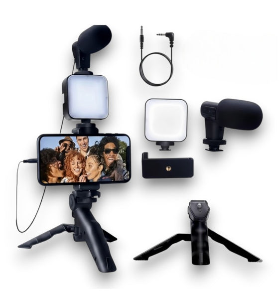 Todo en uno: Incluye trípode, micrófono y luz LED, los tres elementos esenciales para grabaciones de calidad.